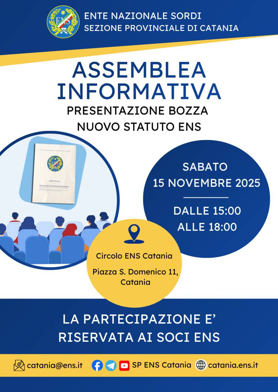 L’incontro si terrà sabato 15 novembre 2025, dalle ore 15:00 alle ore 18:00, presso il Circolo ENS Catania.